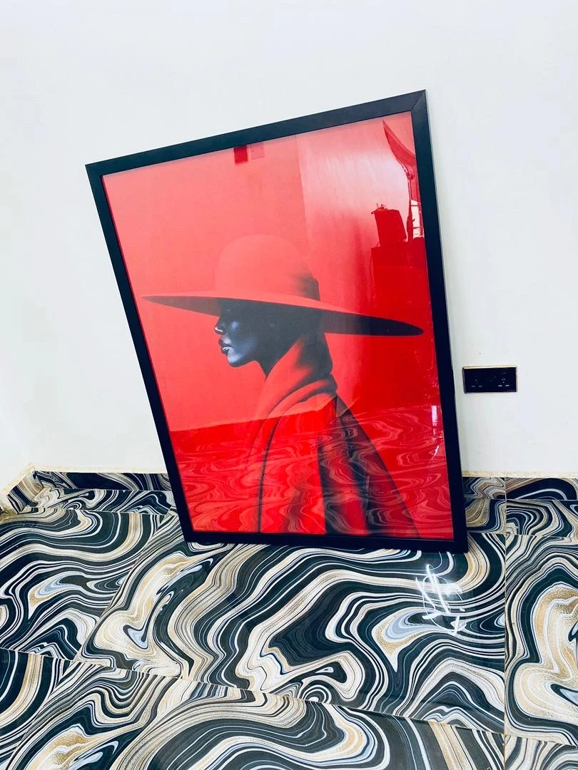 - The slim black frame completes the look with a sharp, contemporary finish that suits the piece's aesthetic perfectly.